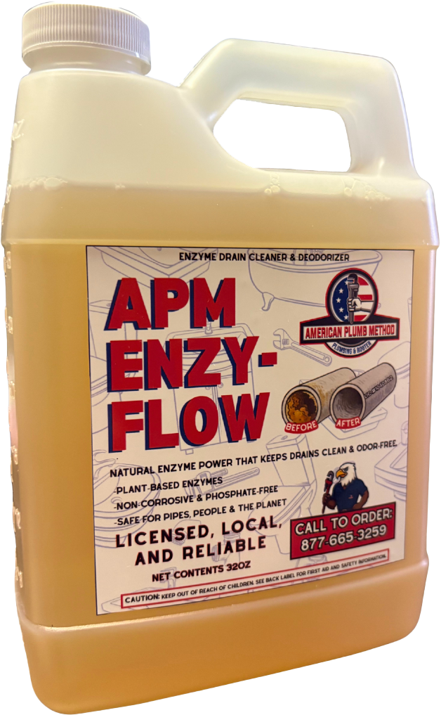 Keep your drains flowing like new with APM Enzy-Flow (32oz), the professional-grade enzyme cleaner created by American Plumb Method Plumbing & Rooter. This natural, plant-based formula breaks down grease, soap scum, and organic buildup that cause slow drains and foul odors all without harsh chemicals.